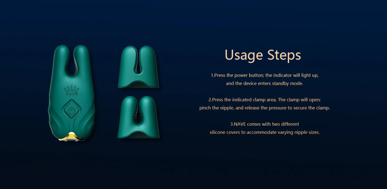 NAVE also comes with additional clamp tips to accommodate different nipple sizes. One of the tip size options is suitable for nipples with a diameter of 8-15 mm. The clamp’s flat interior comfortably secures around the nipple. The alternative size option fits nipples with a diameter of 5-10 mm and features an interior with friction points that intensify the stimulating sensation.